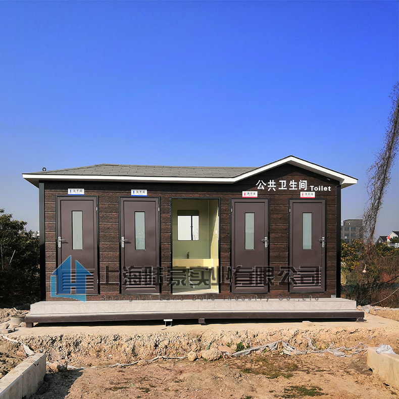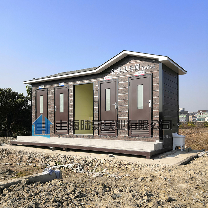 產品編號:移動廁所G-30 規格尺寸:五個位帶管理間(可定制各種規格) 制作工藝:鋼結構龍骨焊接一體成型,外墻金屬雕花板